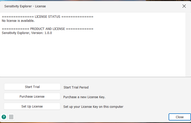 Before a subscription license is set up on a computer, the License dialog may offer the option to run the software as a trial.