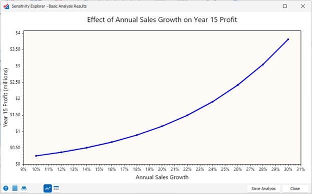 When you click the OK button, Sensitivity Explorer varies the input you selected across the range of values specified for it. For each value, Excel recalculates your spreadsheet and records the output value.