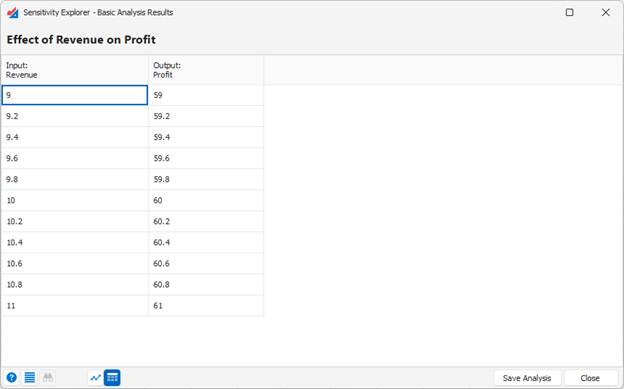 Basic sensitivity analysis is the simplest of the analyses in Sensitivity Explorer, that highlights how changes in one of the inputs in your model affect one of the outputs.